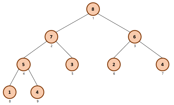 5번째 Node 에 있던 data 8은 그 Node 의 부모노드인 2번째 Node 의 data인 7보다 크므로 위와 같이 또 두 Node가 Swap이 되었다. 그리고 2번째 Node 로 옮겨진 삽입되었던 Node 는 이제 본인보다 큰 data를 가진 부모노드를 만났으므로 이제 Node의 Swap을 멈춘다. 위 그래프가 삽입을 한 그래프의 최종 결과인 것이다.
