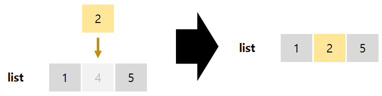 2는 현재 list 의 최대값인 5보다 작다. 따라서 지금까지와 같이 그냥 list 의 우측에 삽입하지 않는다. 이 경우엔 현재 arr 의 값인 2가 최대한 좌측에 위치하게 된다. 최대한 좌측에 위치하는 조건은, 현재 list 에서 본인보다 작은 값들 중 가장 큰 값이 바로 좌측에 위치하는 것이다. list 에서 현재 값의 lower_bound 에 해당되는 위치에 들어가게 된다.