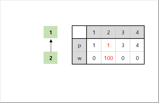 이와 같은 입력에 대해서 유니온 파인드로 구성되는 트리 및 parent, weight 배열의 값들은 이와 같이 변한다.