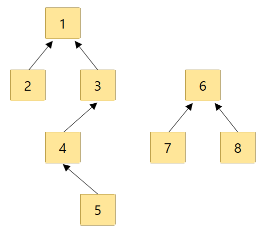 4'th 노드의 루트 노드인 1'th 노드가 8'th 의 루트 노드인 6'th 노드의 루트 노드가 되었고, weight[6] 의 값은 weight[4] - weight[8] + 10으로 초기화가 되었다. 이러한 방식으로 Union 함수가 구현이 되었다.