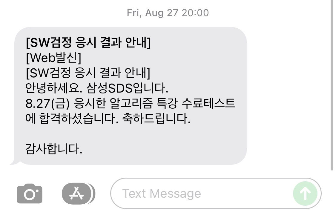 응시를 한 당일 저녁 8시에 합격 문자가 왔다. 2주간 진행이 된 교육을 들으면서 있었던 약간의 힘듦과 아쉬웠던 1차 시험이 모두 해소가 되는 기분이었다. 그리고 이후로 삼성 SDS에서 전화가 몇 번 왔고, 프로 인증서를 받은 혜택에 대해서 설명을 해 주셨다. 근 3년간 있었던 일들 중 가장 큰 성취감을 느꼈던 때인 것 같다 :)