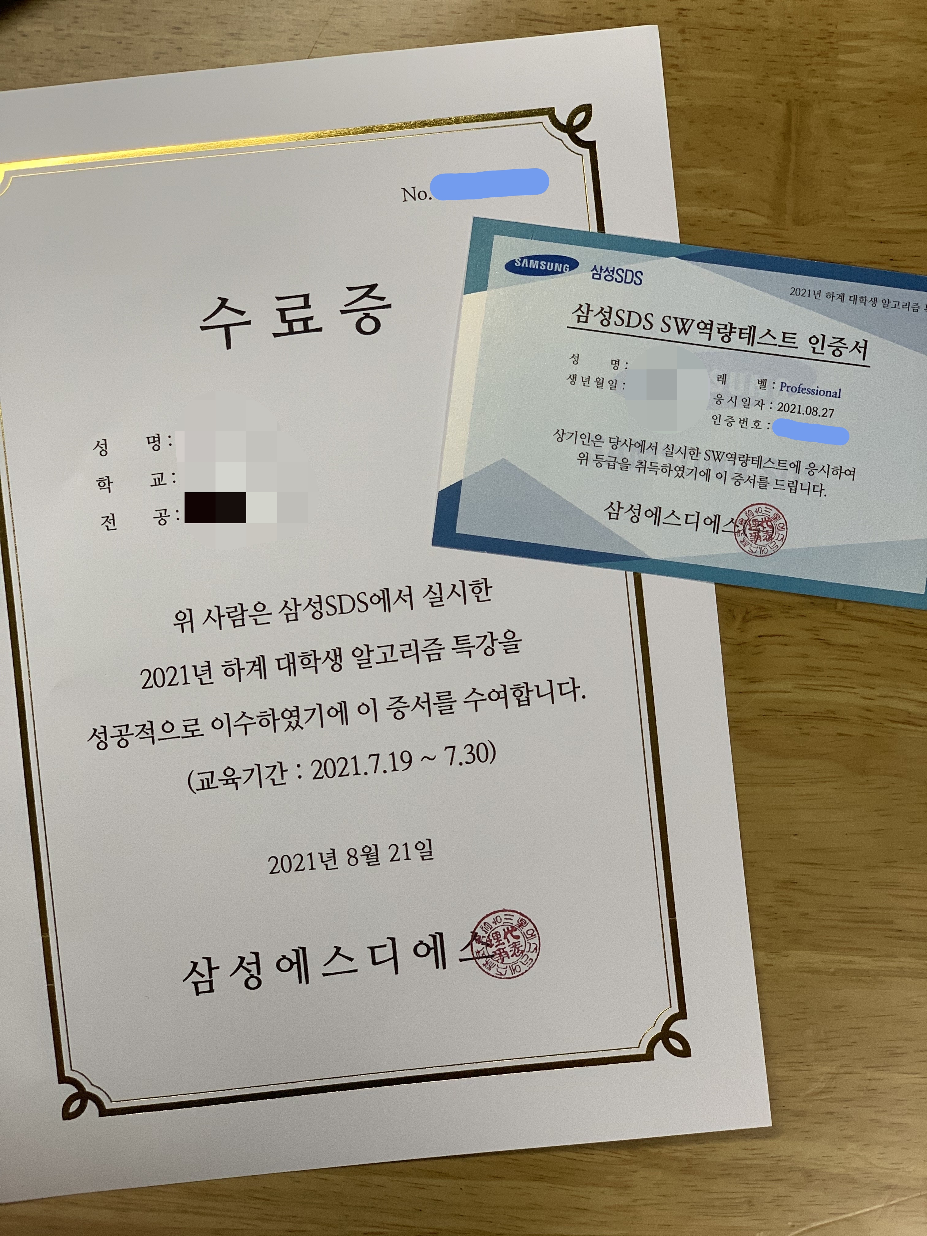 삼성 SDS 21년 하계 알고리즘 특강 Professional 합격 후기