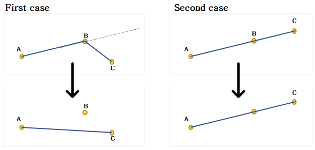- Second case : A, B, C 점들 모두 같은 선상에 있는 경우