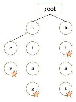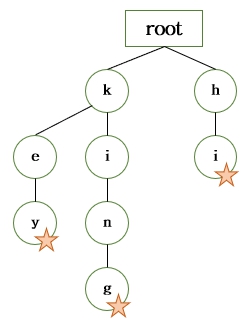 root Node ⇒ 'k' Node ⇒ 'e' Node ⇒ 'e'Node 존재 X