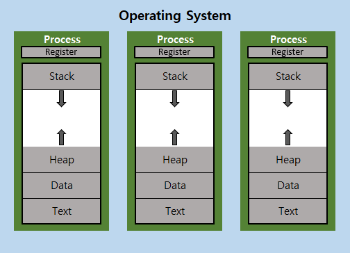 1. 각 Process는 독립적인 실행단위를 가진다. 두 프로세스가 동일한 프로그램에 연관될 수 있지만, 이 두 프로세스는 별도의 실행순서로 간주된다.