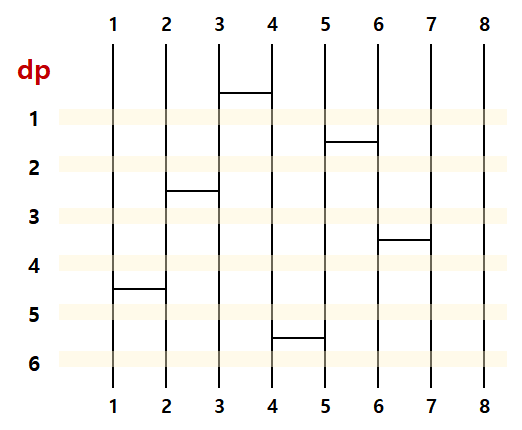 2. 현재의 dp 값을 체크할 때, 현재 세로선과 연결된 가로선이 있는지 여부도 따져야한다.