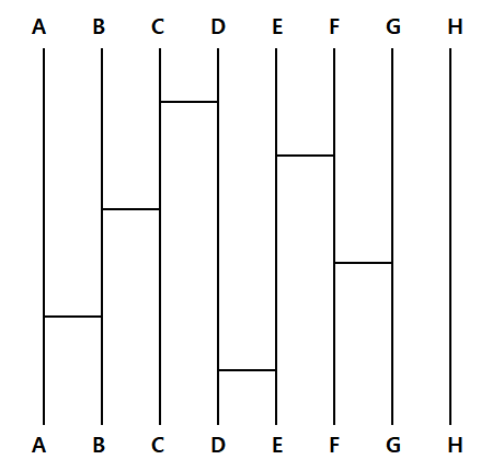 사다리 게임을 할 때 사용되는 사다리가 있다. 세로선은 N개가 있고, 가로선은 M개가 있다. 세로선은 맨 왼쪽 것부터 1, 2, …, N의 번호가, 가로선은 맨 위의 것부터 1, 2, …, M으로 번호가 붙어 있