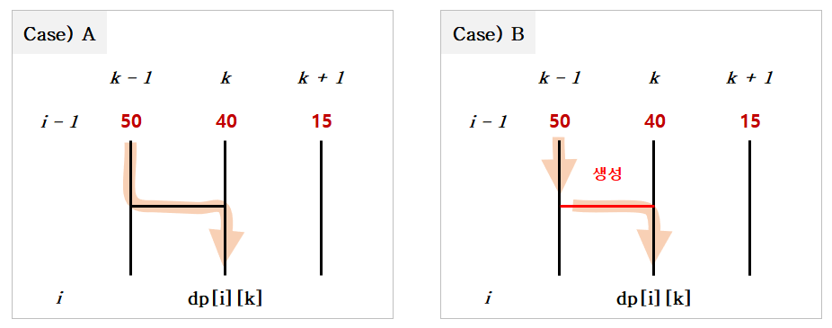 Case) B : dp[i][k] = dp[i - 1][k - 1] + make_cost ;