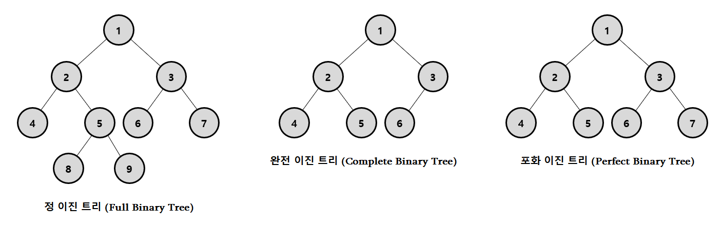 - 정 이진 트리 (Full Binary Tree) : 모든 임의의 노드의 Child 노드의 개수가 0 또는 2개인 이진 트리