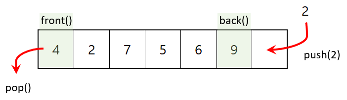 - 위 예시 queue 에서 pracQueue . back() 의 값은 9가 된다.