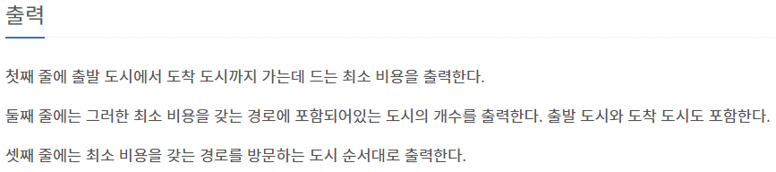 출력 조건의 둘째, 셋째 조건이 없다면 그냥 정말 기본적인 다익스트라 문제이며, 1916번: 최소비용 구하기 가 이에 해당한다.