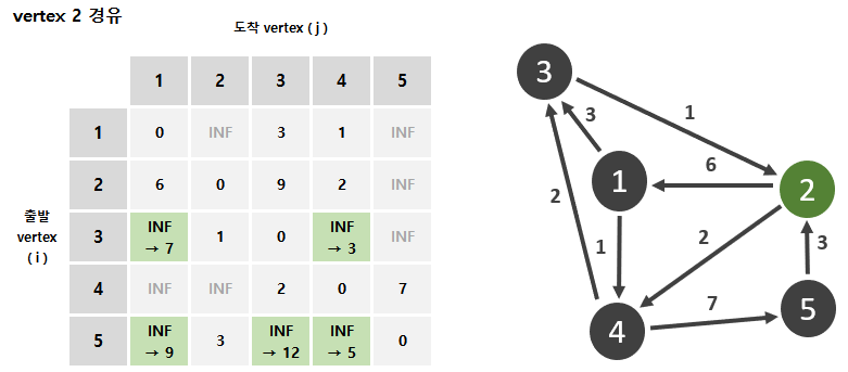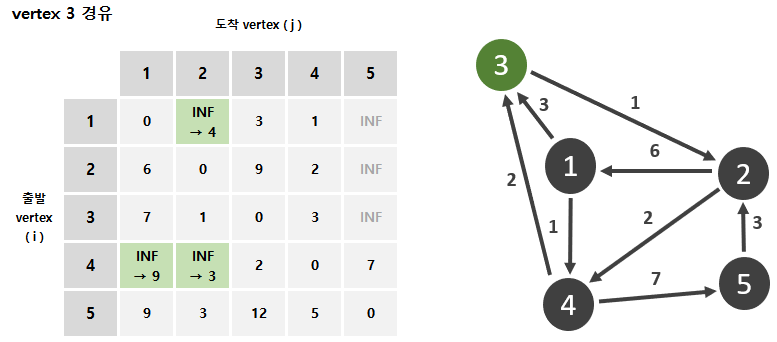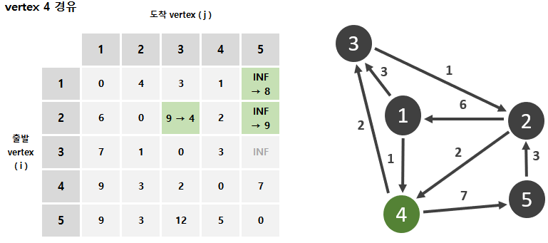 아래 Floyd-Warshall 이 진행되는 형태를 직관적으로 나타내 보았다.